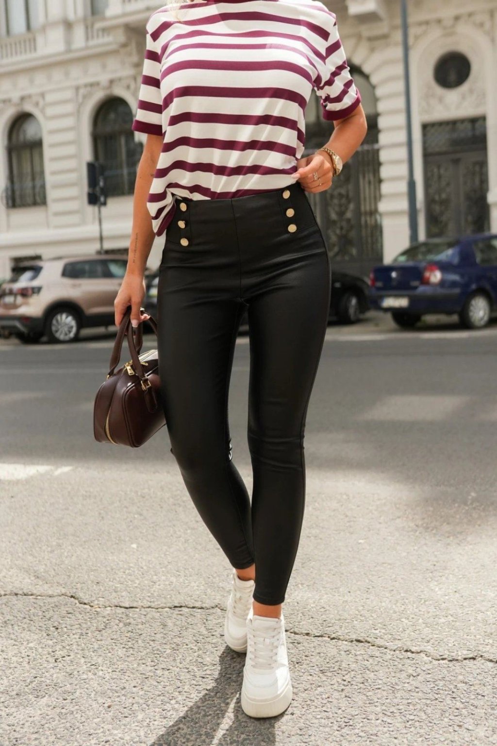 Džegíny s gumou v pase koženkové černé