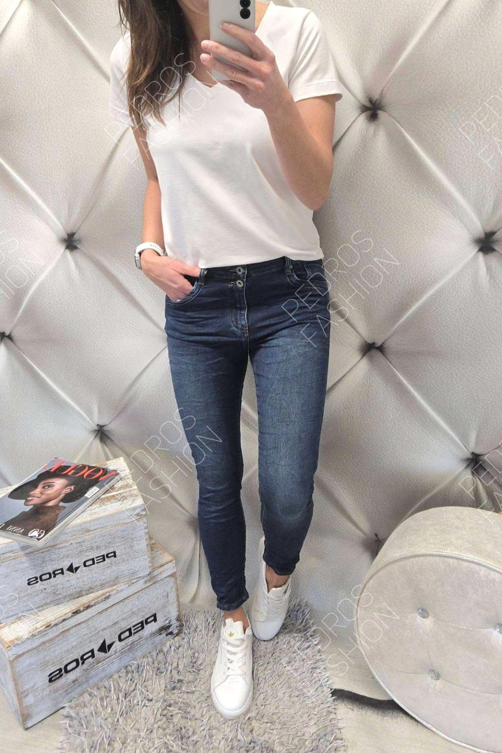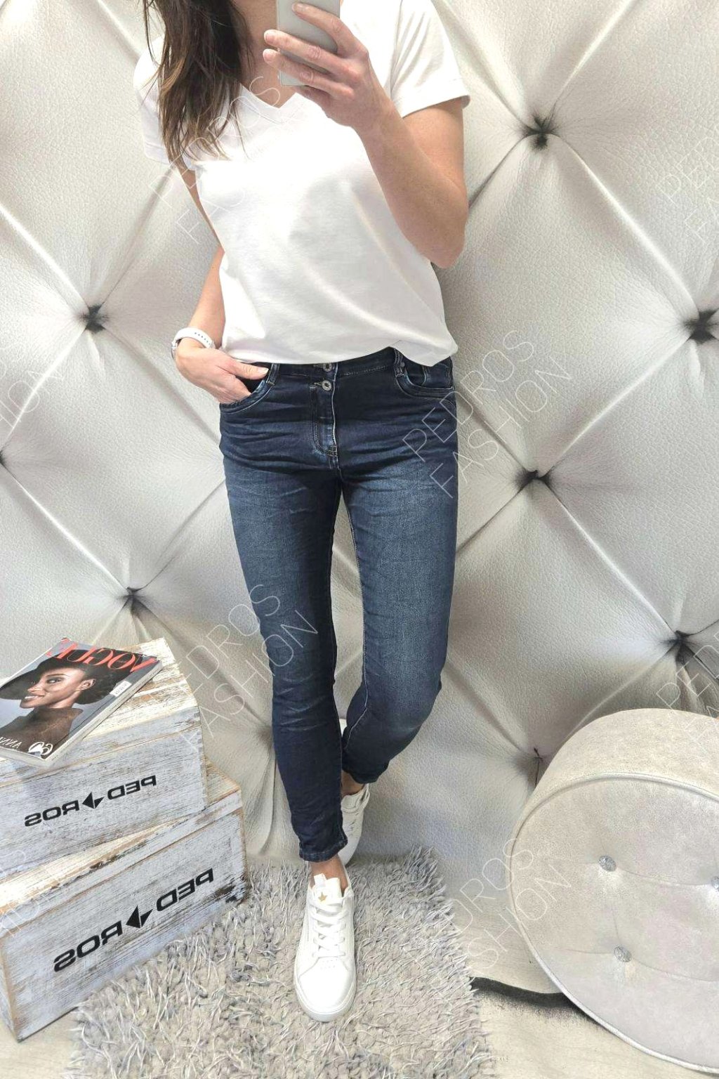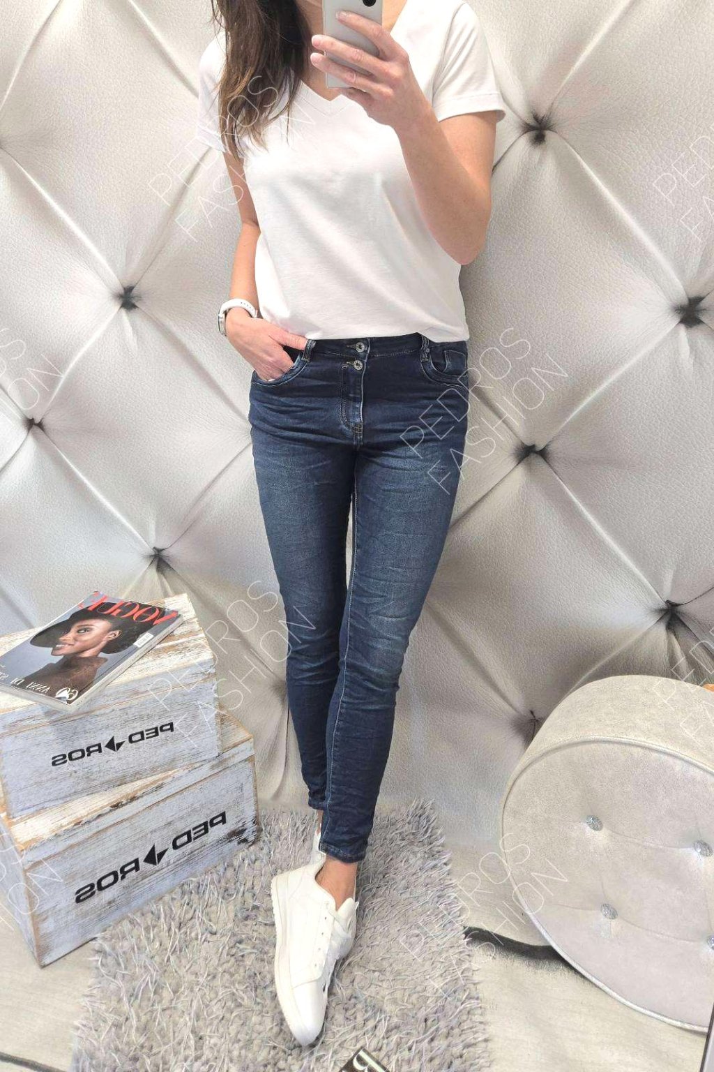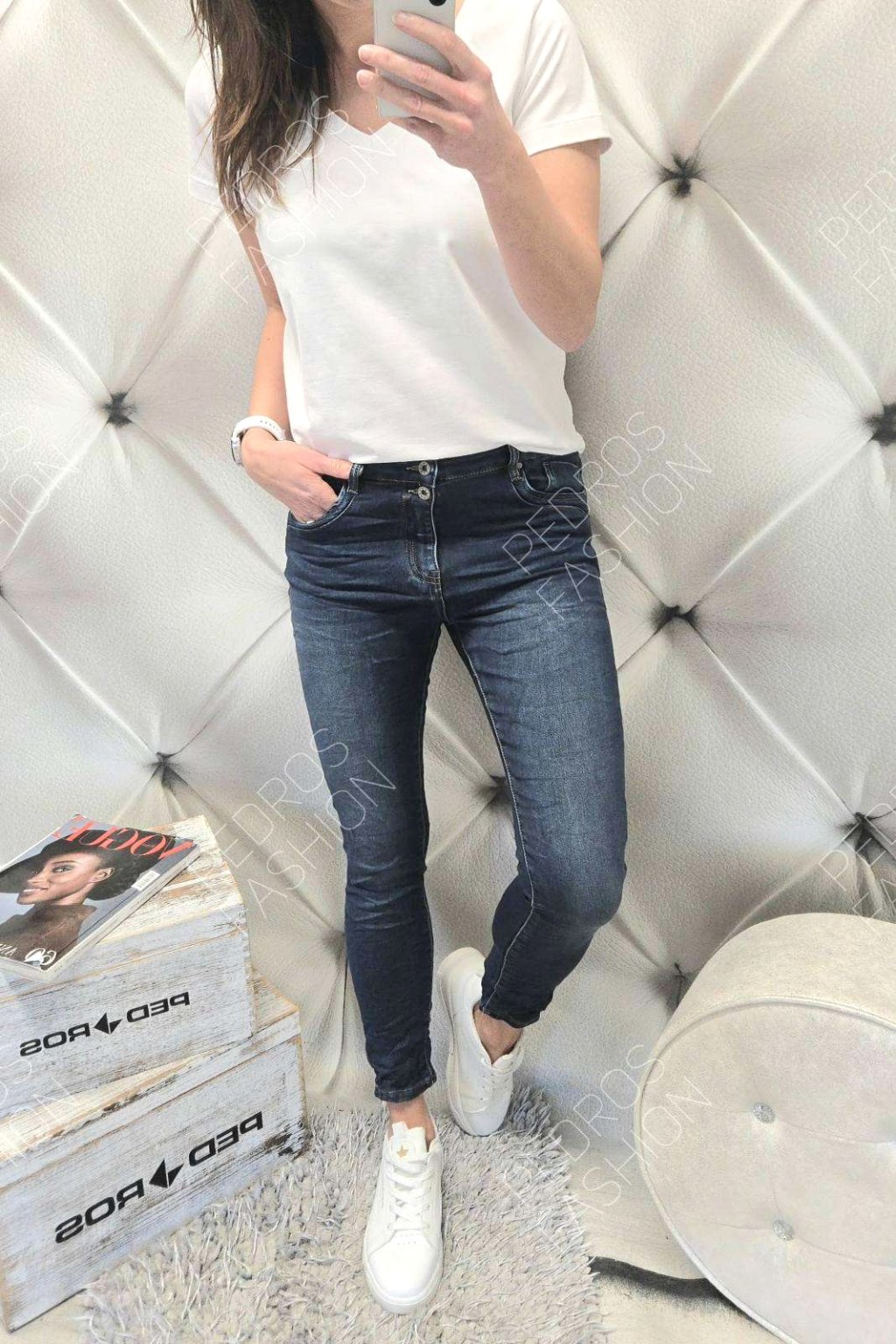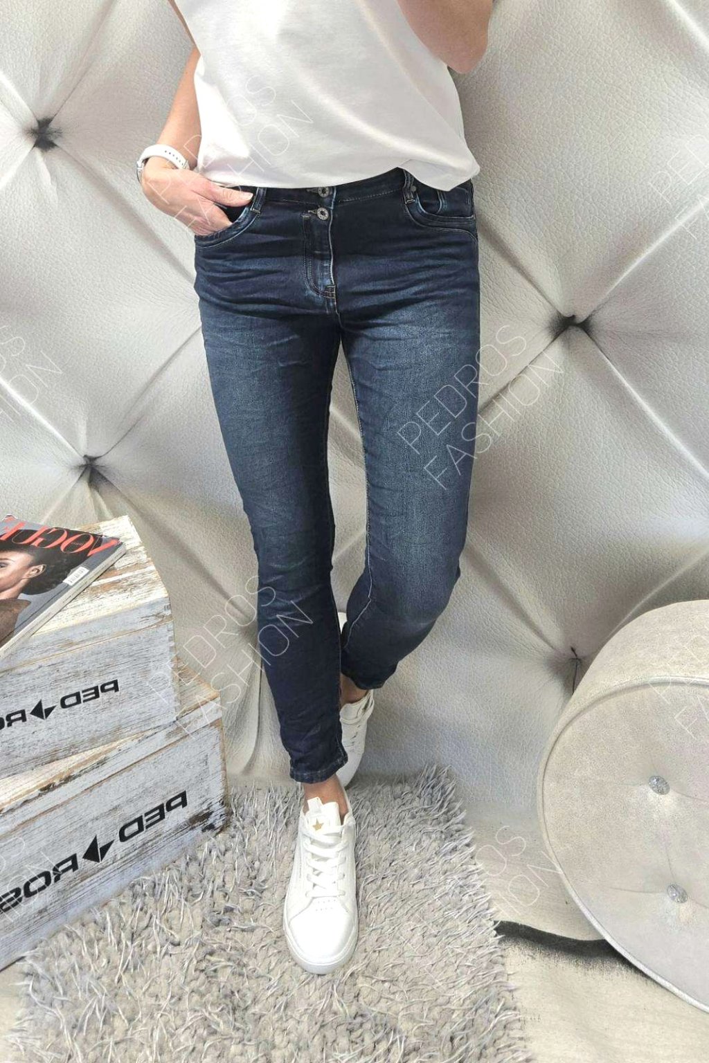 - 56% bavlna, 42% polyester, 2% elastan