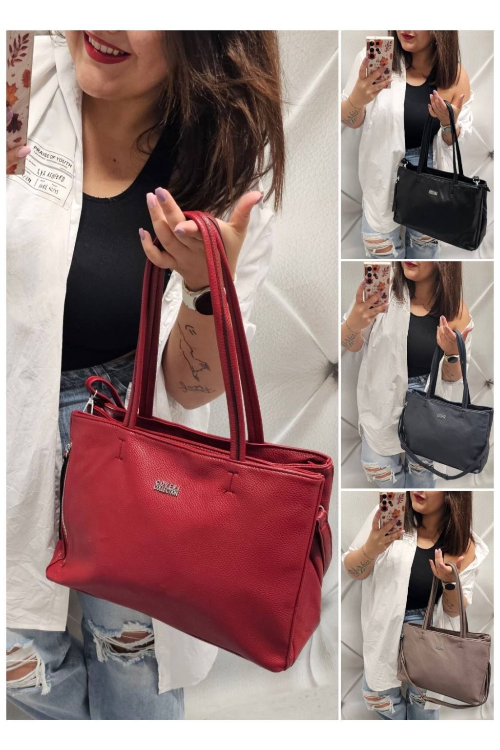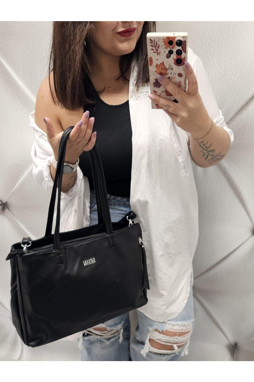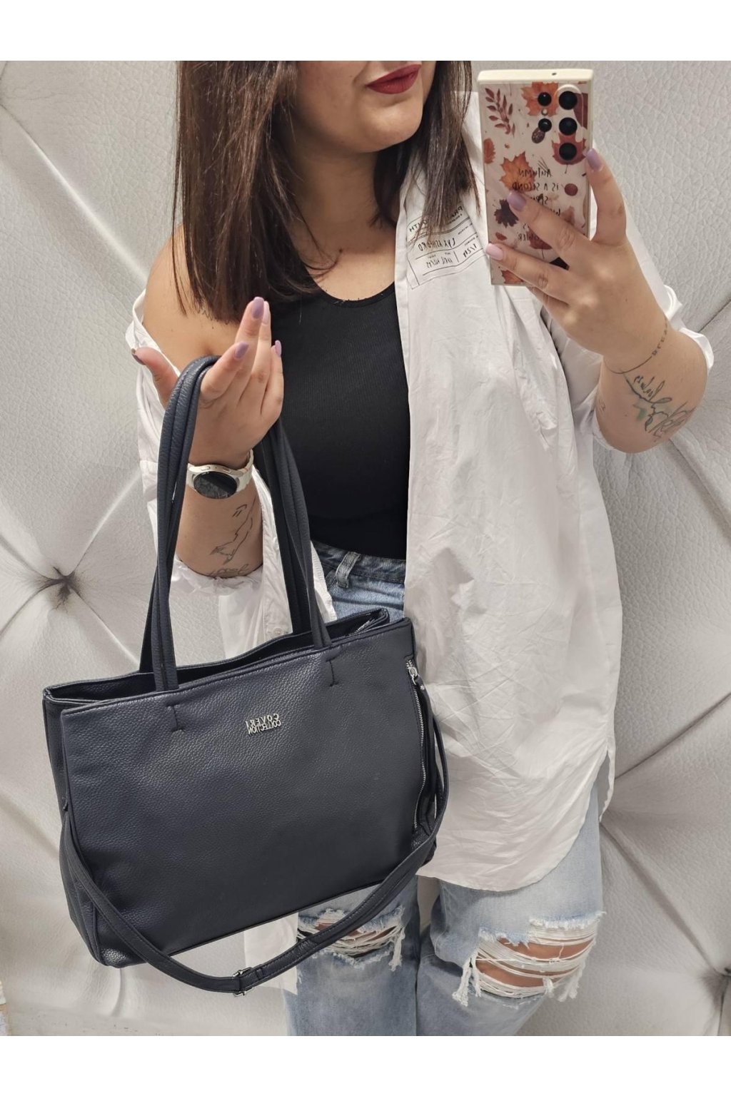 - kabelka má zapínání na zip + kabelka má dvě hlavní kapsy na zip