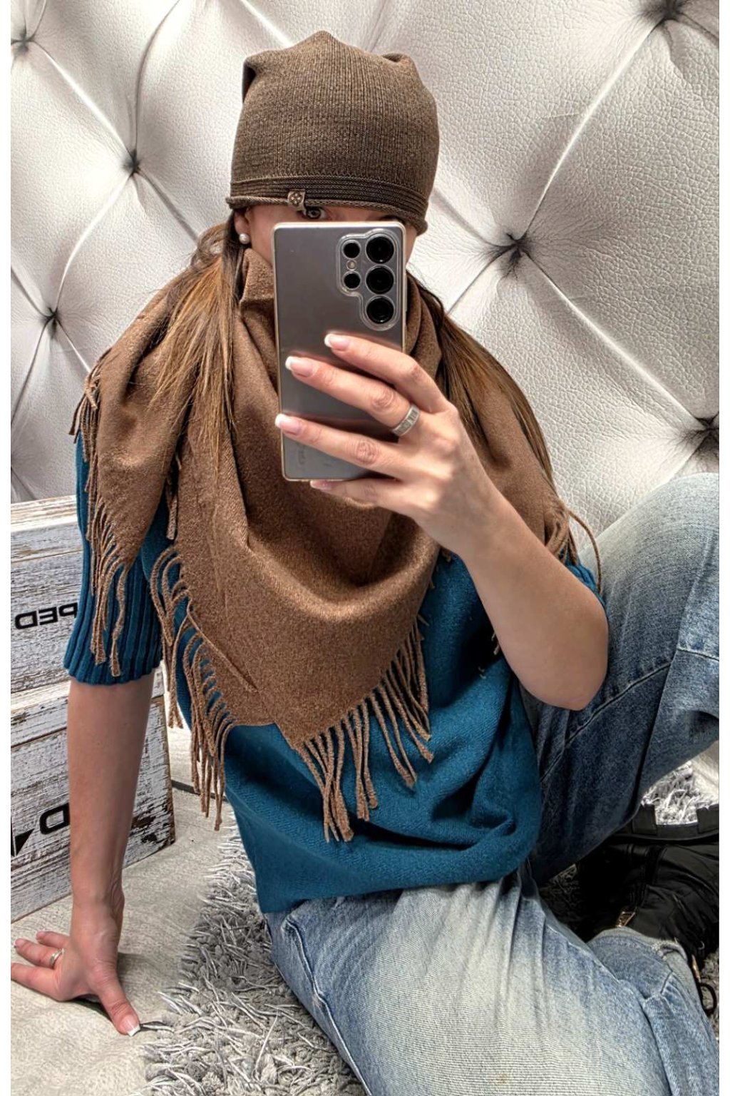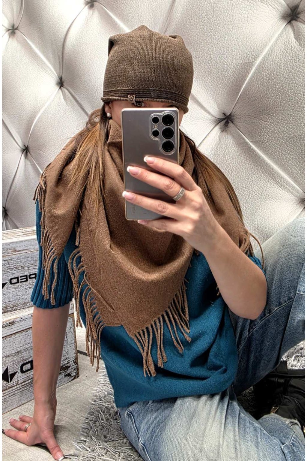 SLADĚNÝ SET čepice a šátku do hněda dárek pro ženu