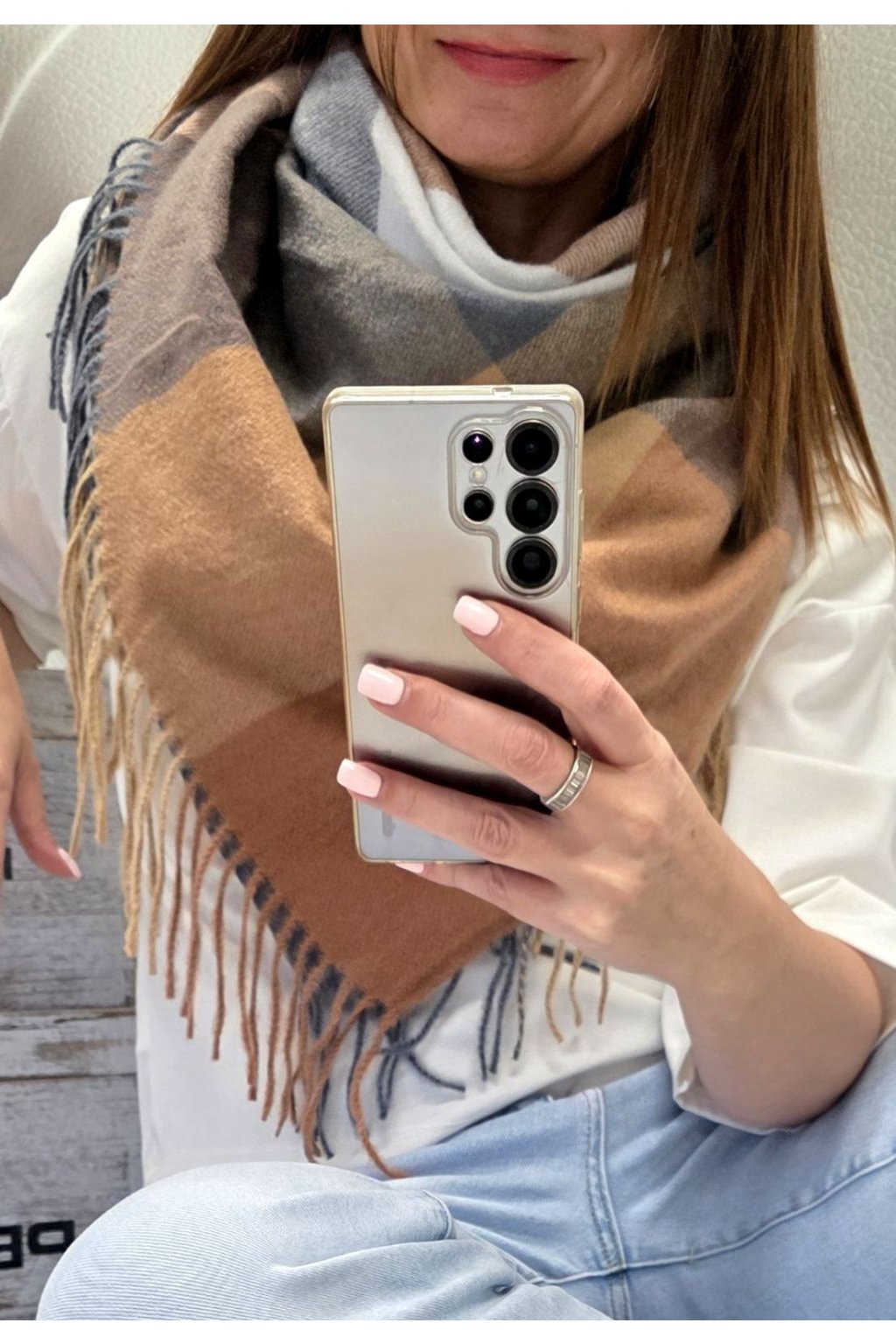 Šátek Grace hnědošedobéžový